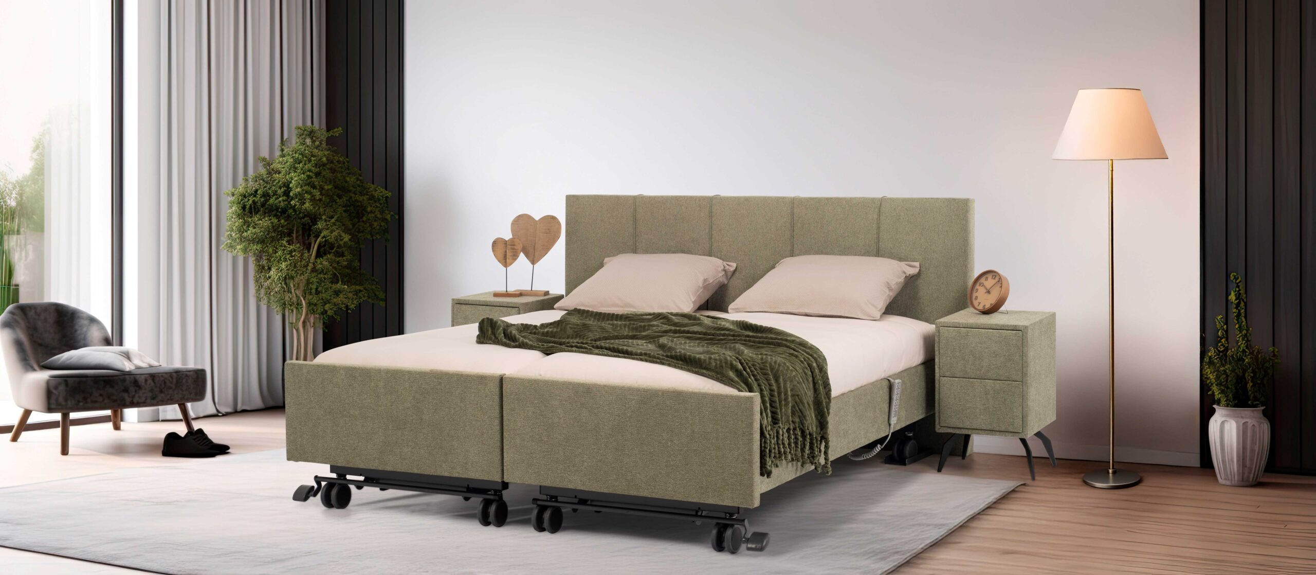 Het Elba Castello Hoog-Laag Bed is volledig elektrisch verstelbaar en combineert een professionele zorgfunctie met een moderne, luxe uitstraling. Het is geschikt voor zowel thuiszorgsituaties als voor mensen die optimaal comfort willen in hun eigen slaapkamer. Dankzij de diverse stof- en kleurmogelijkheden configureert u het Elba Castello Hoog-Laag Bed helemaal naar uw eigen smaak, passend bij de uitstraling van uw slaapkamer. Hieronder vindt u een overzicht van de functies, mogelijkheden en afmetingen.